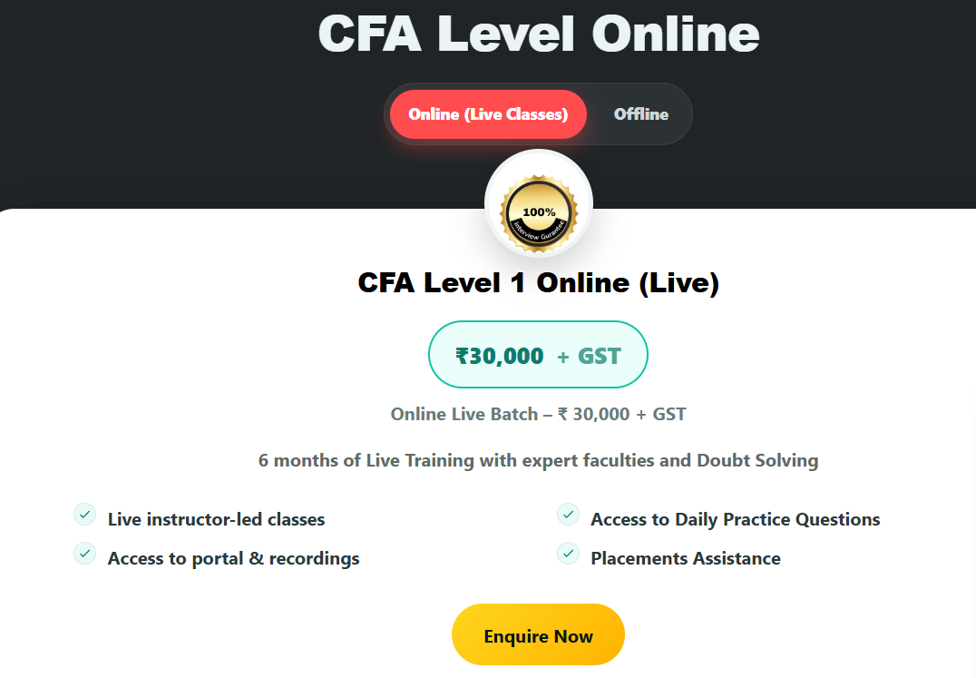 | CFA by Mahesh Ramuka | ₹25,000 – ₹55,000 (per level) | 3.9/5 | Classroom / Live Online | Budget-friendly, accessible teaching |