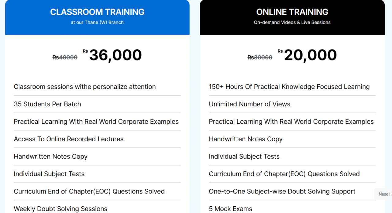 - Firstly, the price which is at INR 30,000 But carries the most important feature required by CFA candidates i.e Doubt solving sessions. So, if we compare that same featured product, then it would cost an average INR 35,000, even from the worst institutes.