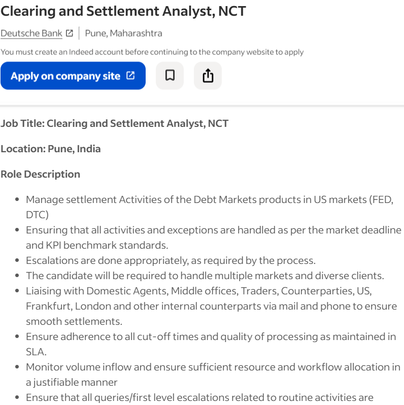 3. Clearing and Settlement Analyst, Deutsche Bank