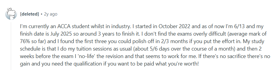 “ACCA is hard but not impossible to pass the acca exam With hard work and dedication, it’s absolutely doable. While I struggled at times, particularly due to an undisciplined schedule, I was still able to score well in most papers. ACCA’s versatility allows for self-study or part-time study while juggling a full-time job, making it more flexible and affordable compared to a bachelor’s degree in accounting.”