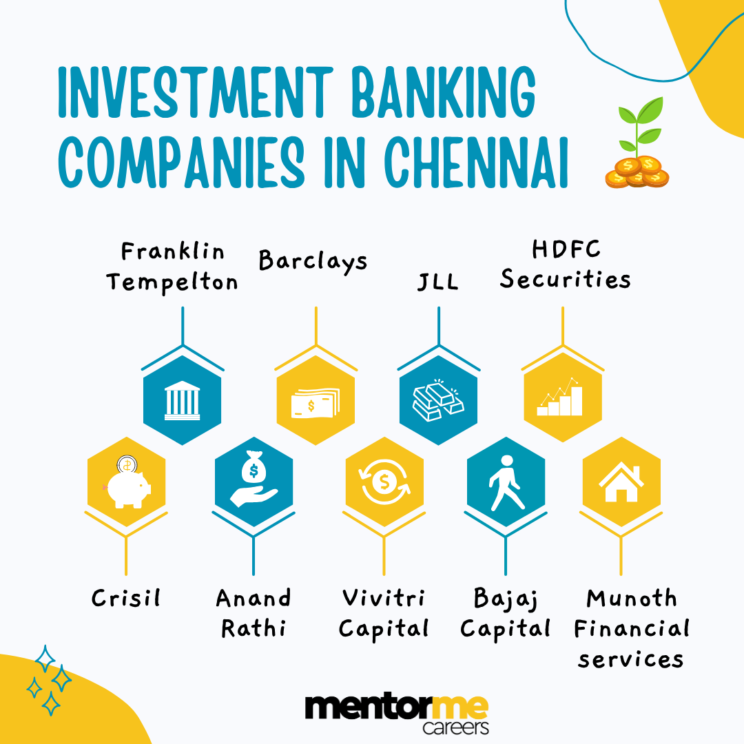 Now, ill be honest with you Chennai is not really known for investment banking jobs. Comparatively, it does have enough so that you can start you career. Additionally, majority of the investment companies in Chennai are multinational corporations.