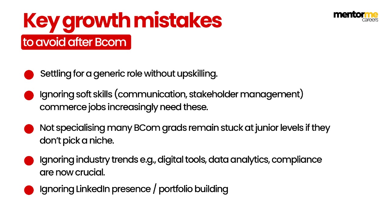 • Ignoring soft skills (communication, stakeholder management) commerce jobs increasingly need these.